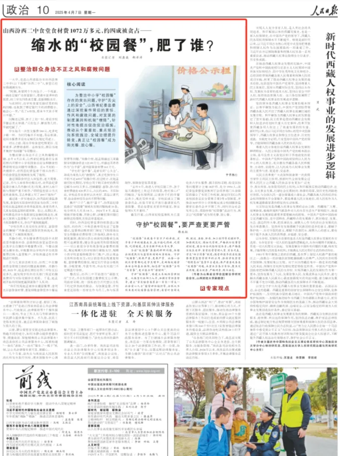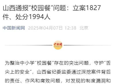 人民日报、、、、人民网、、、中国新闻网等媒体报道山西“校园餐”贪腐问题,,,,以下内容摘自【中国新闻网】: